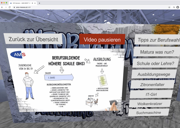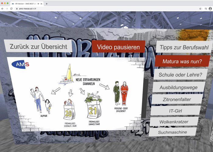 Weil die „BeSt 2021“ in Wien virtuell stattfinden musste, sollten zwei interaktive Grafiken auf das Berufslexikon und auf AMS-Infobroschüren hinweisen.