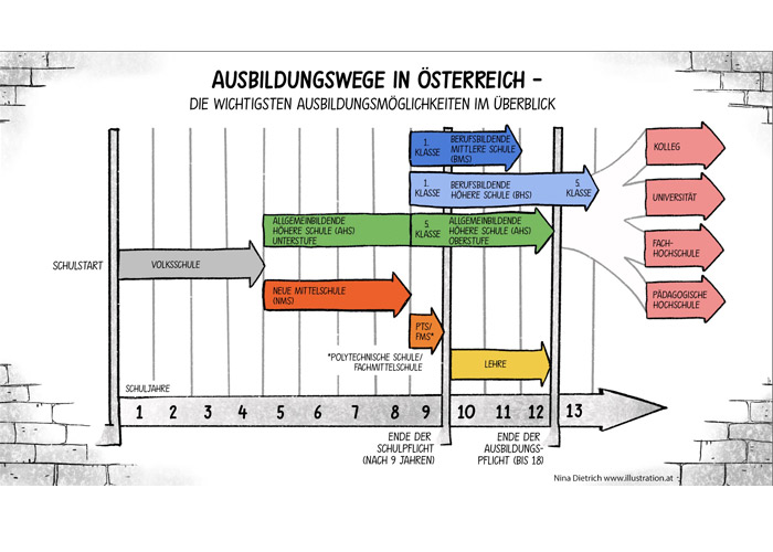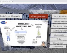 Die gezeichnete Wahlhilfe erklärt interaktiv Wege zur Ausbildung für Jugendliche und führt zu spezifischen Broschüren im Netz.