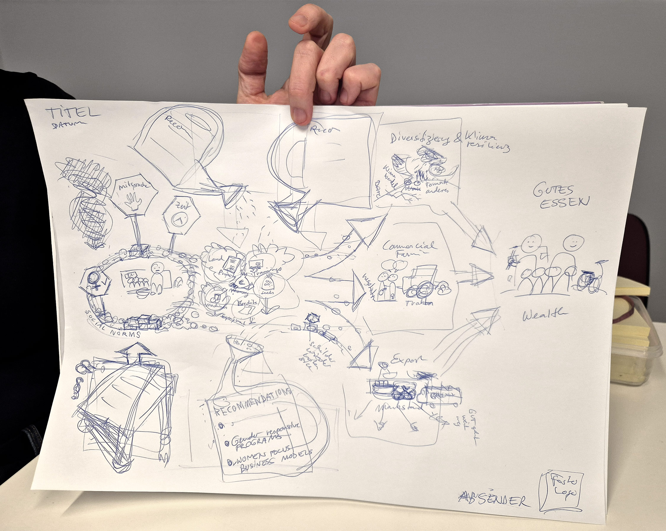 Illustrierte Power-Point-Folie als Argumentationsstütze für Entwicklungshilfeprojekte